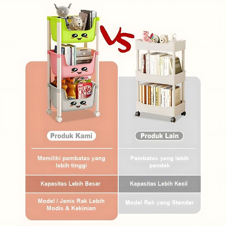 Rak Susun Penyimpanan Terbuka Serbaguna Rak Trolley Susun Dengan Roda Rak Buku Tebal Plastik Terlaris