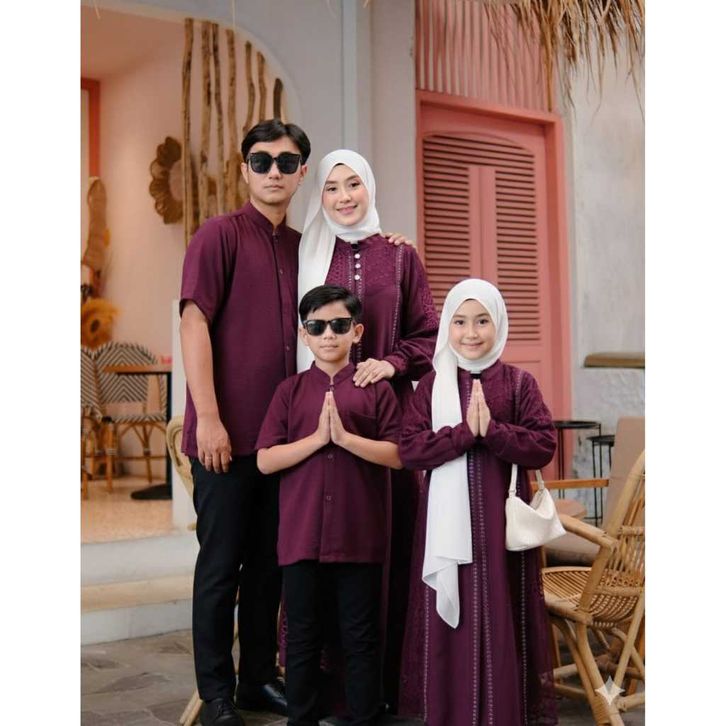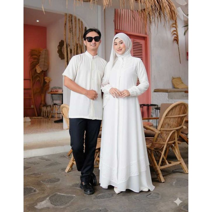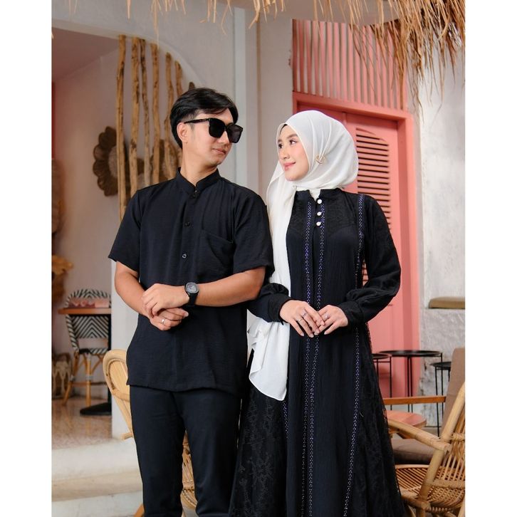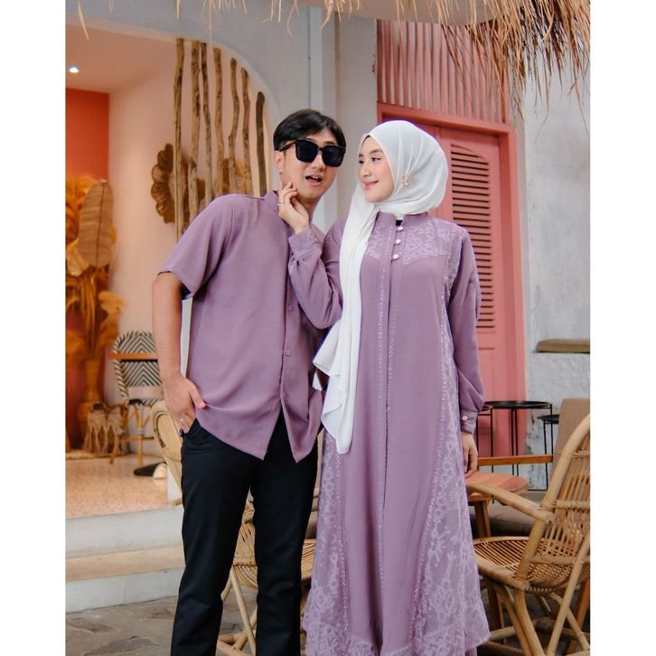 SARIMBIT COUPLE TERBARU Couple Gamis Veloxa Series 2025-2026 | Crinkle Mix Brukat Muslim Mewah + Payet | Syari