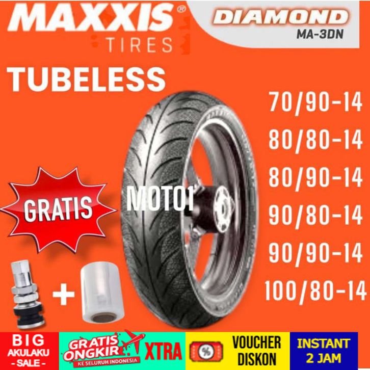 (Free Pentil Besi dan Wrapp) Ban Maxxis( Diamond MA-3DN - Tubeless (70/90 - 80/90 - 90/90 - 80/80 - 90/80 - 100/80) Ring