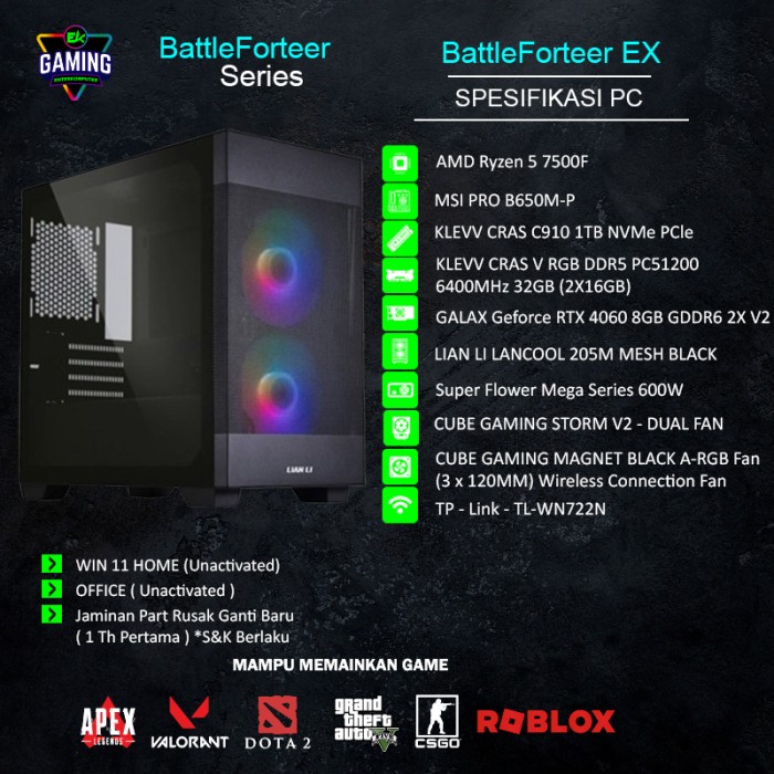 PC RAKITAN EK GAMING BATTLEFORTEER EX - RYZEN 5 RTX 4060 ENTERKOMPUTER - FORTEER 406 S, PC + PACK KAYU