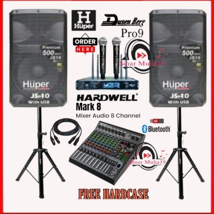 Paket Sound System Karaoke SPK Aktif HUPER JS10 Mixer Hardwell MARK 8 Sound System Karaoke Bluetooth