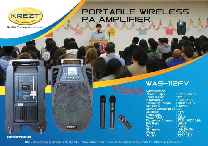 KREZT WAS-112FV - PORTABLE SOUND SYSTEM Sound System Karaoke Bluetooth Mini Panggung Mobil Rakitan