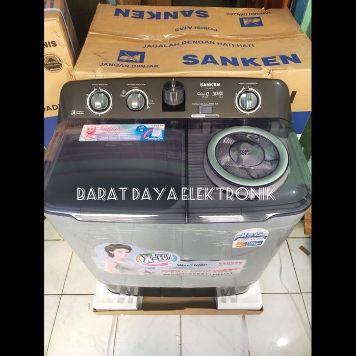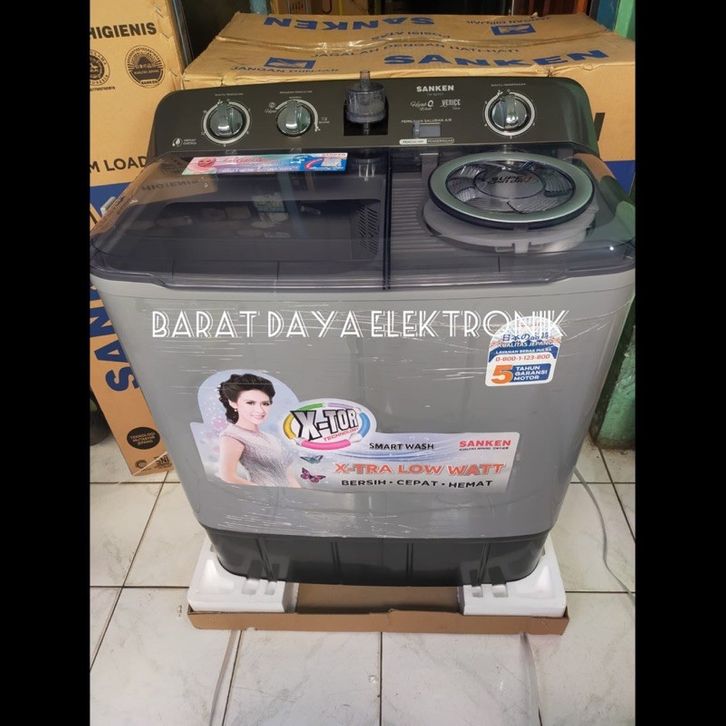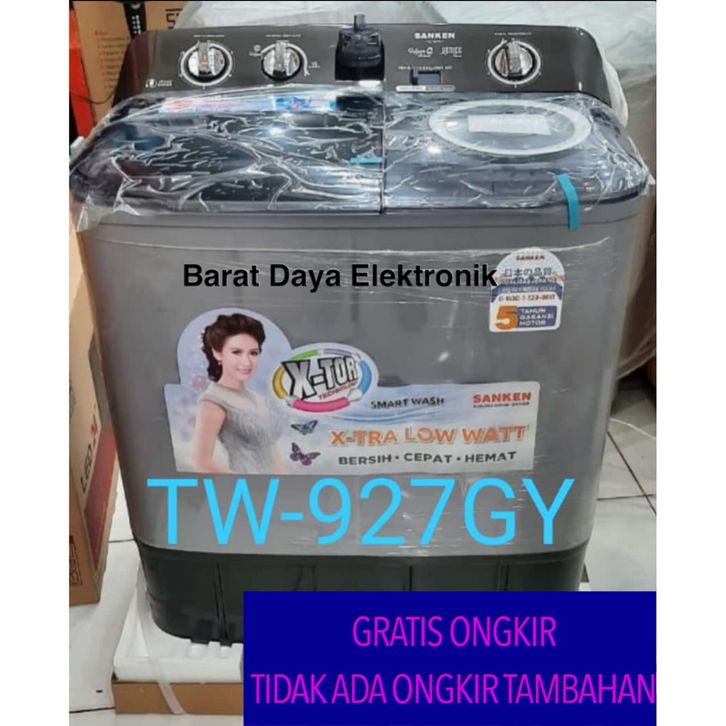 Mesin Cuci Sanken 2 Tabung TW-927HGY Kapasitas 9 Kg Mesin Cuci Low Watt Hijab Series Low Watt 250