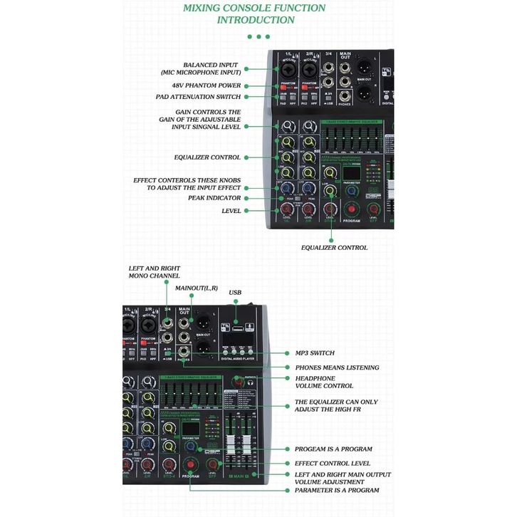 [PROMO] AIBEDO AK4/6/8 Saluran Mixer Audio Profesional Dapat dihubungkan ke catu daya mobil 12v 99 DSP USB