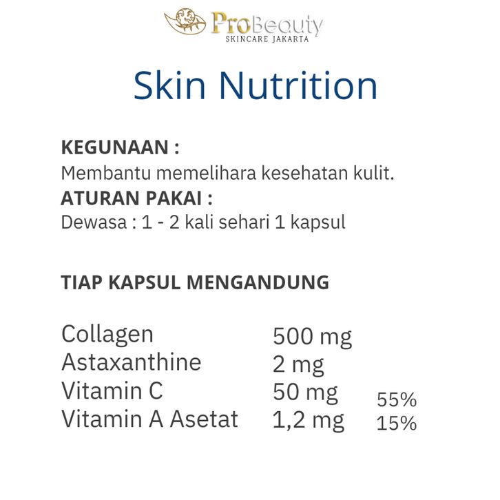 SUPLEMEN KECANTIKAN PROBEAUTY SKIN NUTRITION COLLAGEN VIT C VIT A UNTUK KESEHATAN DAN KECANTIKAN KULIT WAJAH DAN BADAN