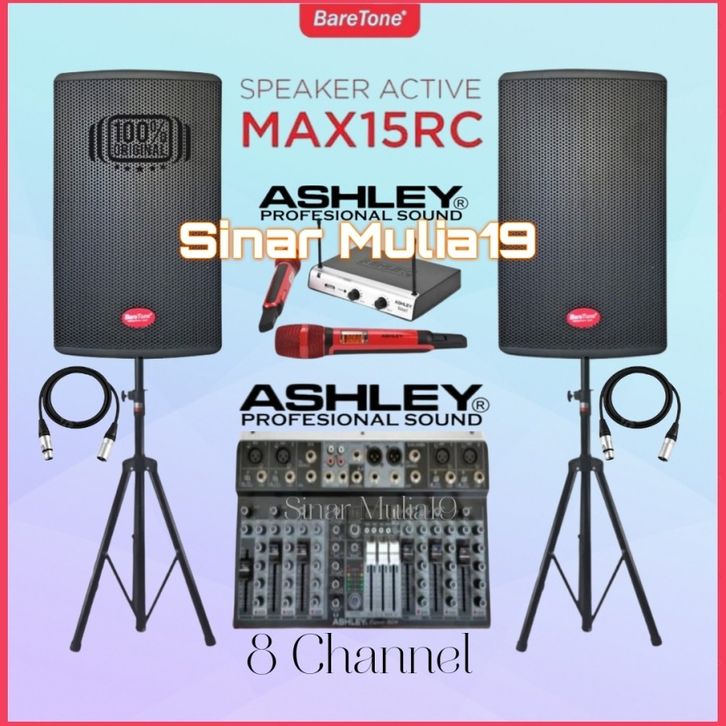 Paket sound system Baretone 15 inch aktif max15rc mixer ashley 8 channel