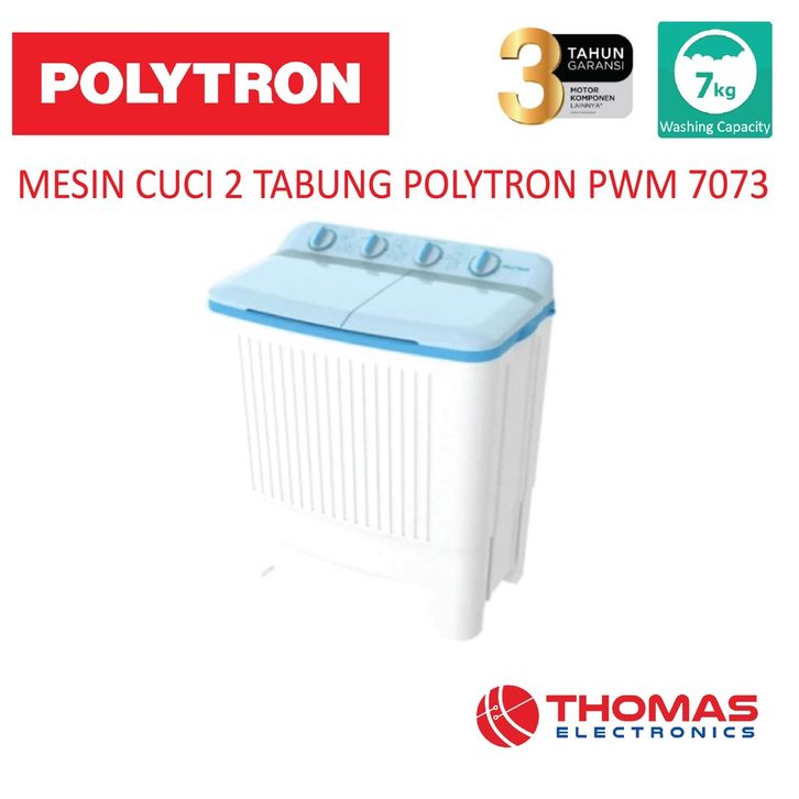 Mesin Cuci 2 Tabung POLYTRON PWM 7073 Kapasitas 7 Kilo PWM 7073 Garansi Resmi