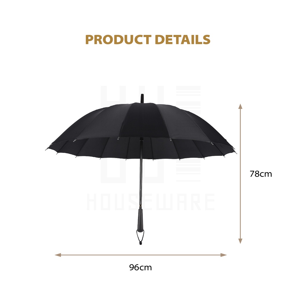 [Limited Stock] HUGO Payung Golf Besar Payung Polos Jumbo 16 Jari Premium Rangka Kuat Kokoh