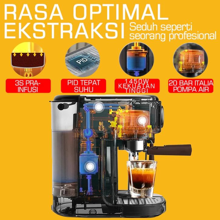 Pembuat Mesin Espresso LaHome 20 Bar Tongkat Uap Pembuih Susu Profesional Cappuccino Latte Pembuat Mesin Espresso LaHome