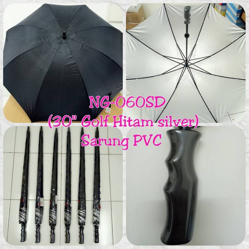 [Limited Stock] Payung Golf JUMBO Polos Dalam Silver Anti UV Premium Quality Ujung Besi PAYUNG GOLF Besar 135 cm