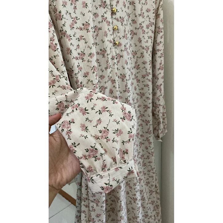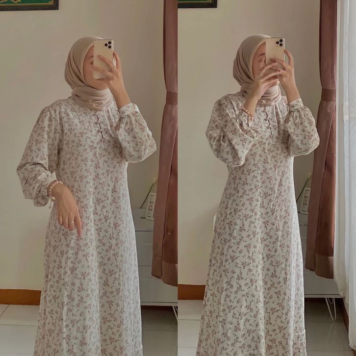 Dres Wanita Adeline Vintage Kancing Aktif Tali Belakang Crinkle All Size