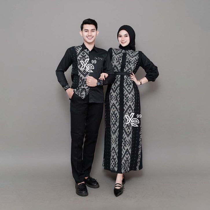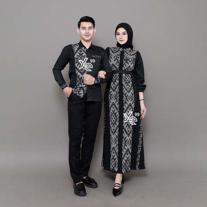 Sarimbit Couple Lebaran [READY STOCK] Set couple belvia black couple tenun, belvia dress kondangan ethnic, belvia black