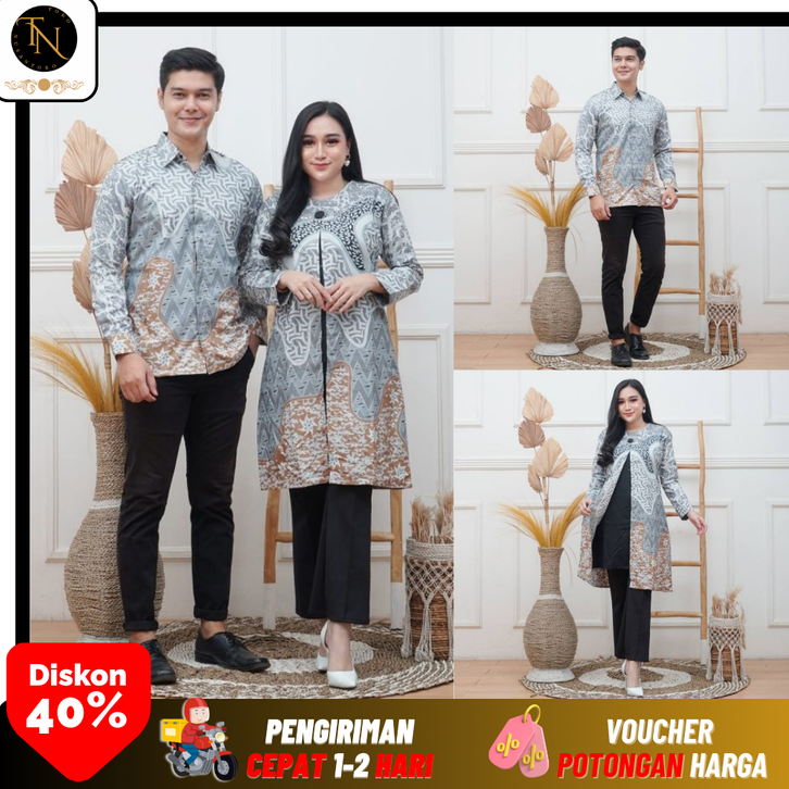 Baju Lebaran 2026 Batik Couple Tunik Wanita Modern Terbaru 2024 Batik Baju Couple Pasangan Ukuran M L XL XXL XXXL 4L 5L
