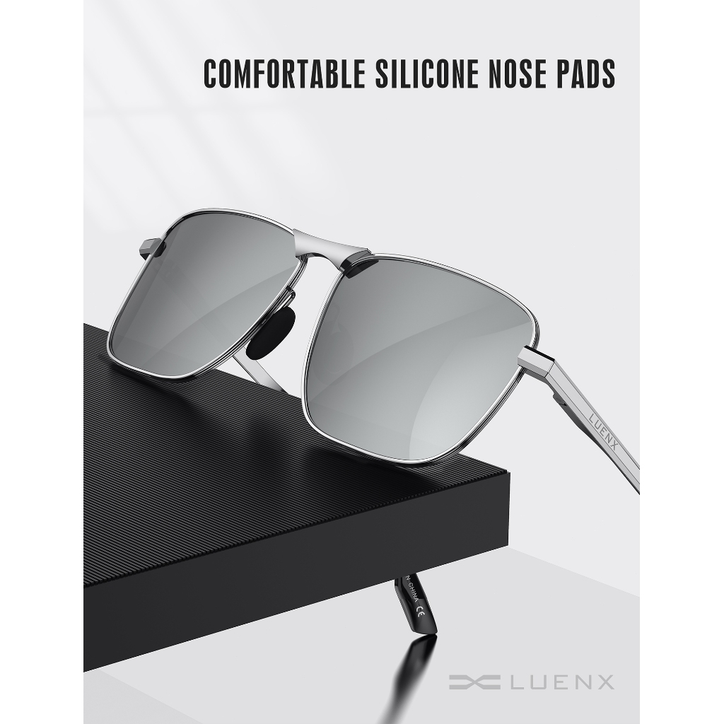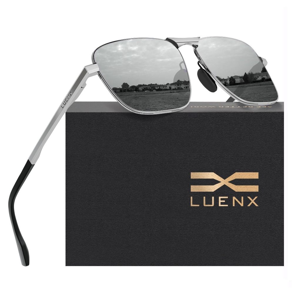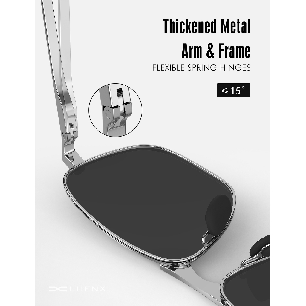 [Limited Stock] Luenx Kacamata Rectangular Polarized Aviator Unisex Retro Pilot Shades Driving UV400 Protection