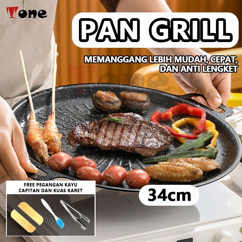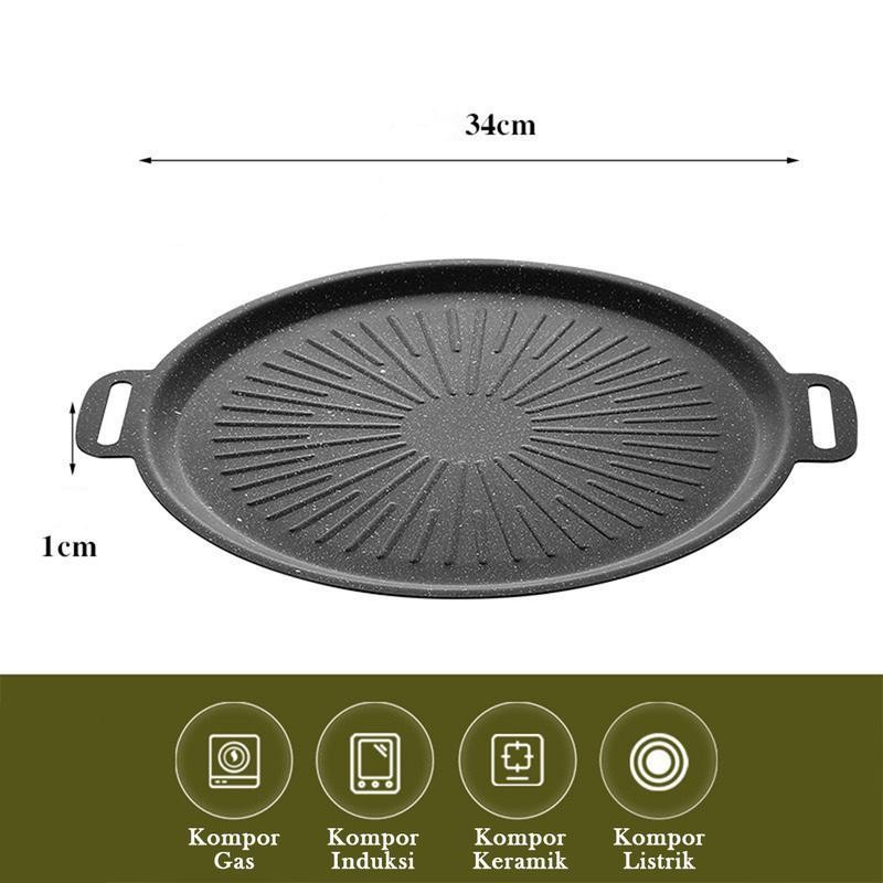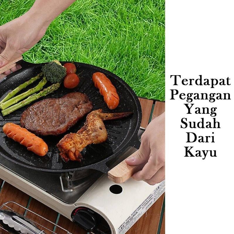 Wajan Teflon Anti Lengket Grill Pan 34cm Serbaguna BBQ Panggang Daging Ikan Ayam Kompor Gas Portable