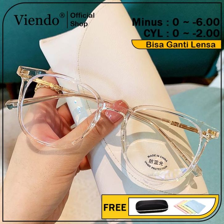 Viendo Kacamata Minus Photocromic Anti Radiasi Blueray Wanita Pria Korea Gaya Fashion Elastik TR90 Frame 2 in 1 TERLARIS