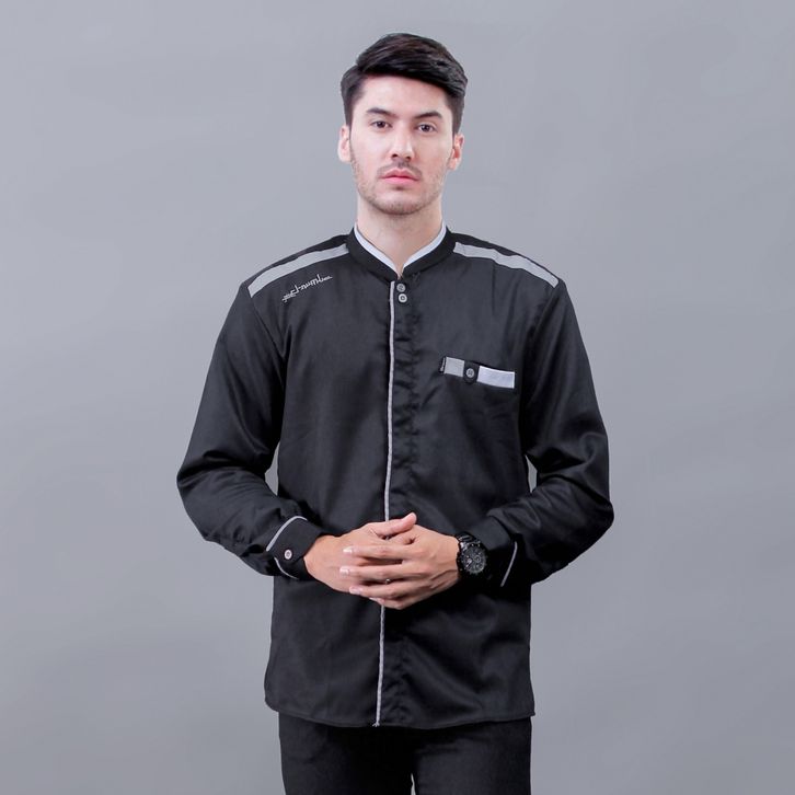 Baju Koko Pria Dewasa Lengan Panjang Polos Motif Yisunsin Original Elrumi Warna Hitam