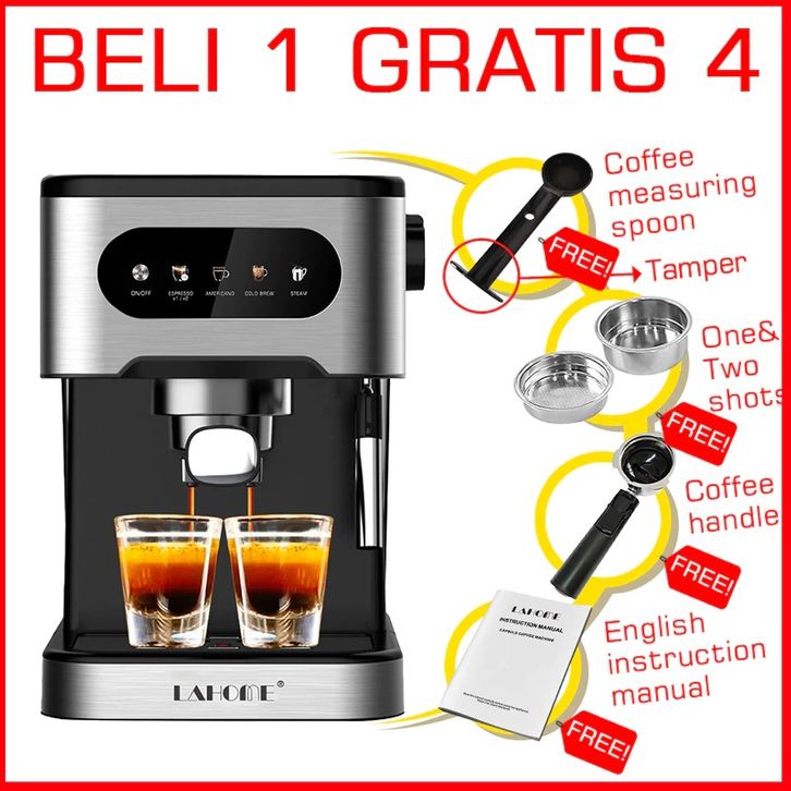 LAHOME 4 In 1 Function Mesin Kopi Espreso Otomatis Mesin Kopi Seduh Dingin Panel Sentuh LCD Dengan Pembuih Susu Otomatis