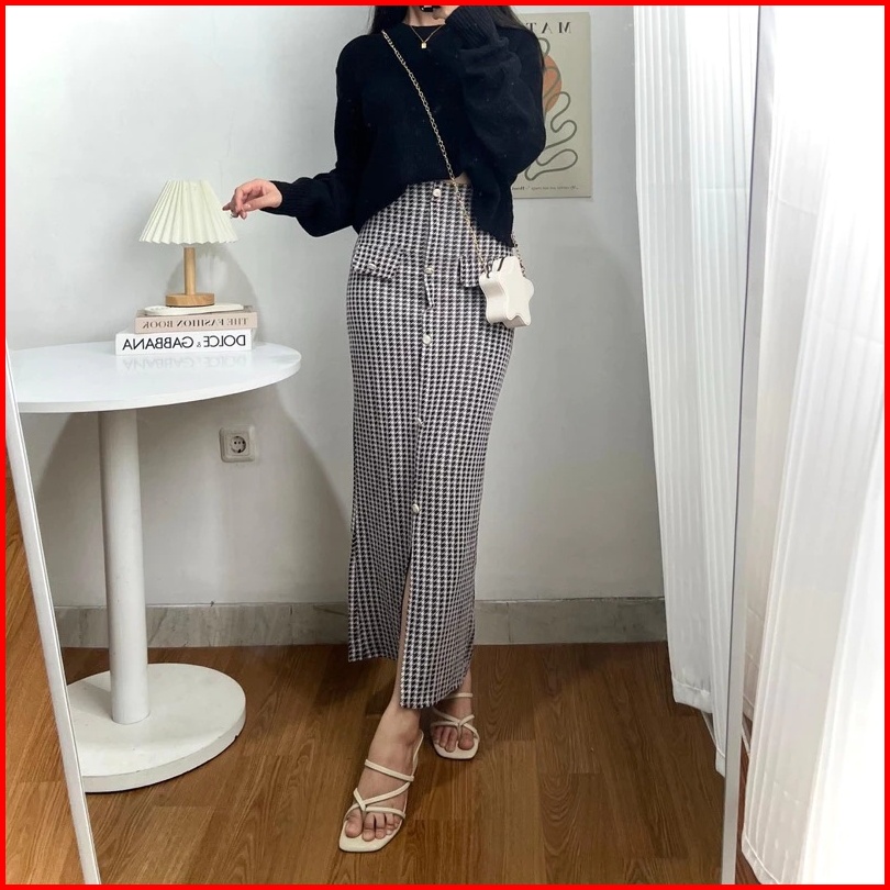 Adale Rok Knit Wanita Maxi Casual Skirt