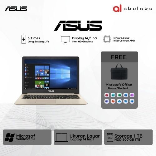 Laptop Asus 14 Inch Intel Celeron AMD Ram 8GB HDD 1TB Windows 10 Secon Mulus Bergaransi