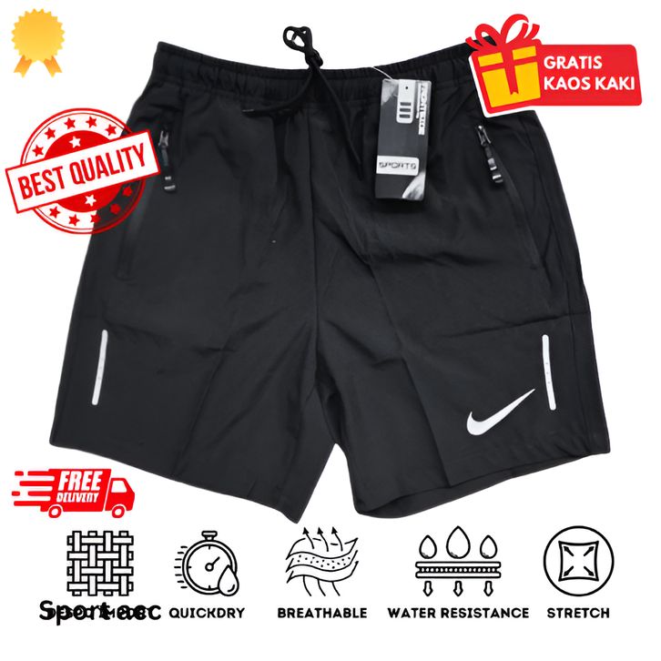 Celana Sport Pria Wanita Pendek Parasut Olahraga Saku Resleting Shortpants Santai Jumbo Polos Hitam