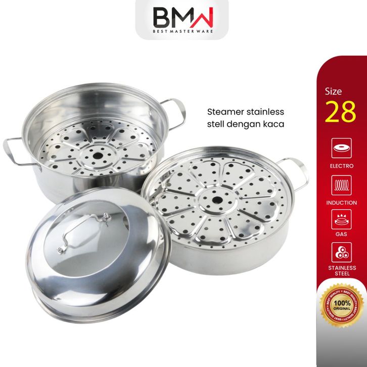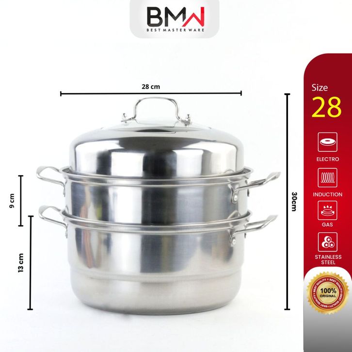 Panci Kukus Serbaguna BMW Kitchen Ware Panci Kukus Siomay 28CM Panci Dimsum Bakpao Nasi Tim Steamer Dandang Stainless