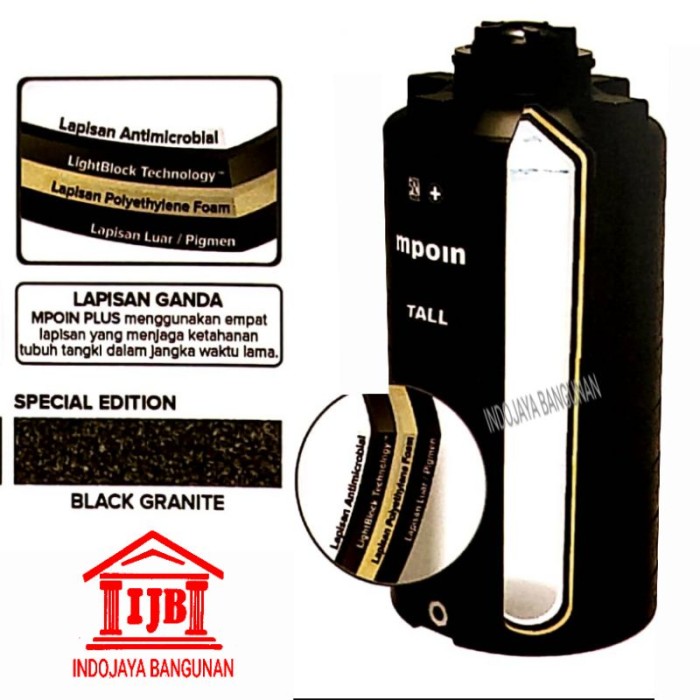 TANGKI AIR TOREN MPOIN DRAIN HITAM 400 600 800 1200 ANTI PECAH & LUMUT - DRAIN 400 LITER