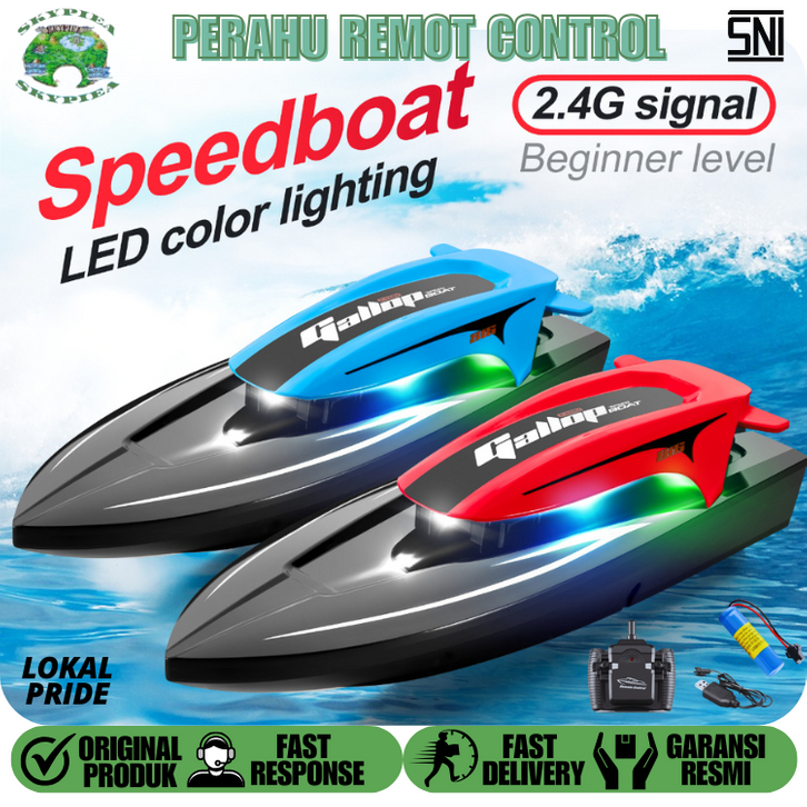 Mainan Remote Control Speed Boat Perahu Rc Kapal 2.4GHz 20km/h Tahan Air Dengan Lampu Premium Free Ongkir