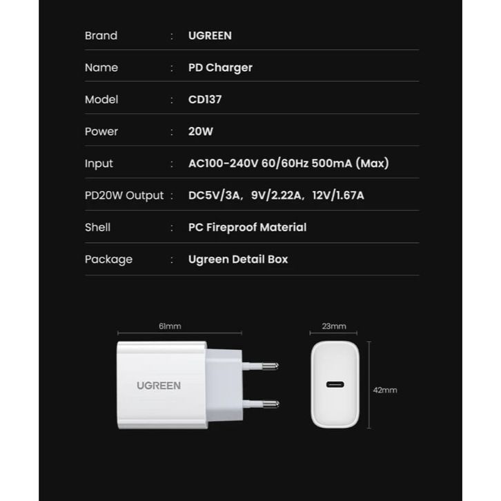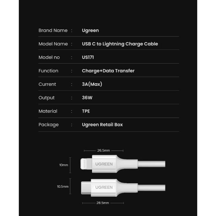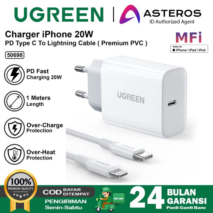 UGREEN Charger iPhone MFi PD Type-C to Lightning Fast Charging 20W 50698