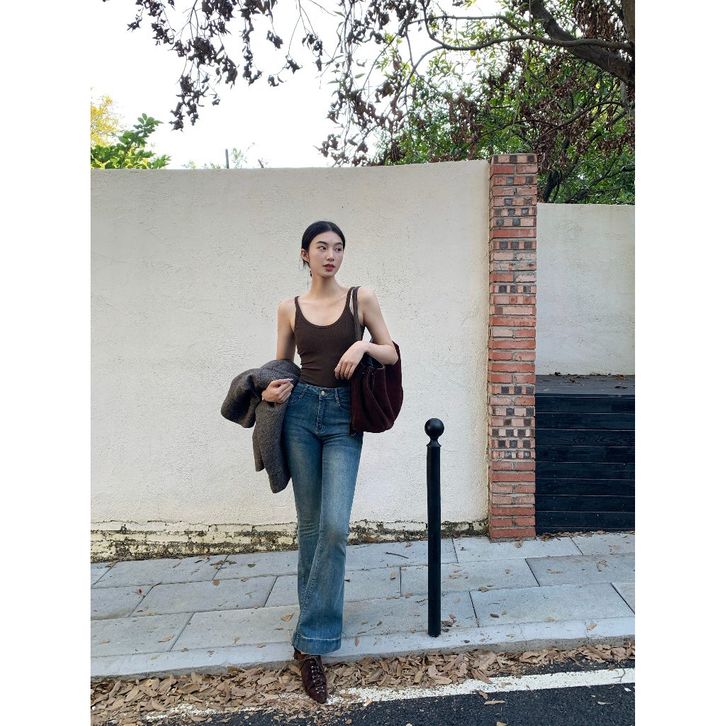 Celana Jeans Wanita Model Cutbray Highwaist Color Blue Retro Stretchy Material Lassie Alpha J79