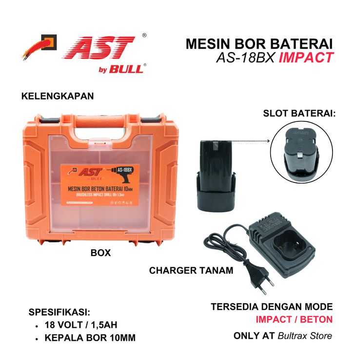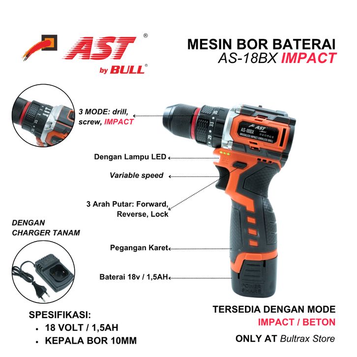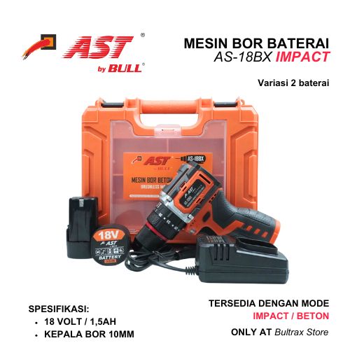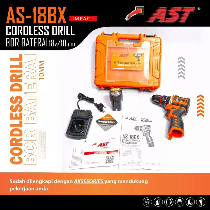 Mesin Bor Baterai Ast As-18bx 18V 10Mm Brushless / Cordless Drill 18Bx Bor Batre / Bor Cordless