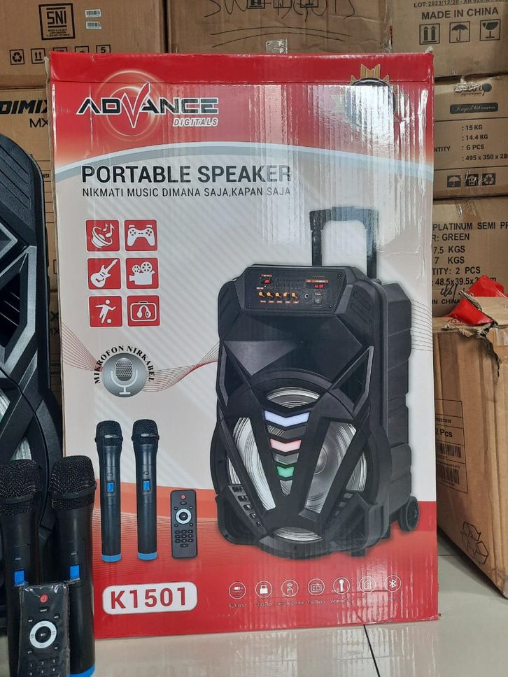 SPEAKER ADVANCE PORTABLE BLUETOOTH K1501 - TERMASUK MIC - 15 INCHI - PEGERAS SUARA SPEAKER MEETING - K 1501 - READY
