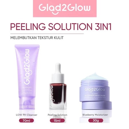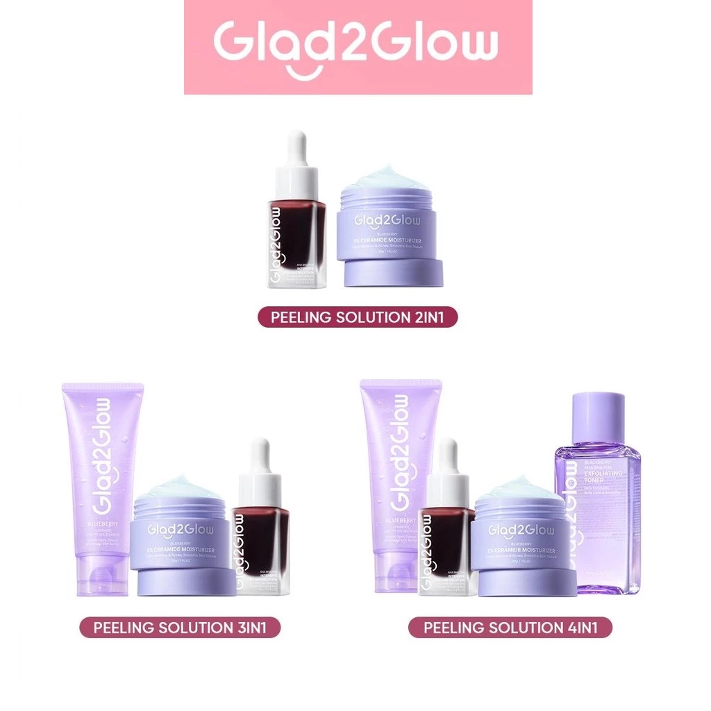 Glad2Glow Paket Peeling solution Bundle all in 1 - 2/3/4 PCS Barrier Skincare Paket-Peeling solution+Blueberry Moisturiz