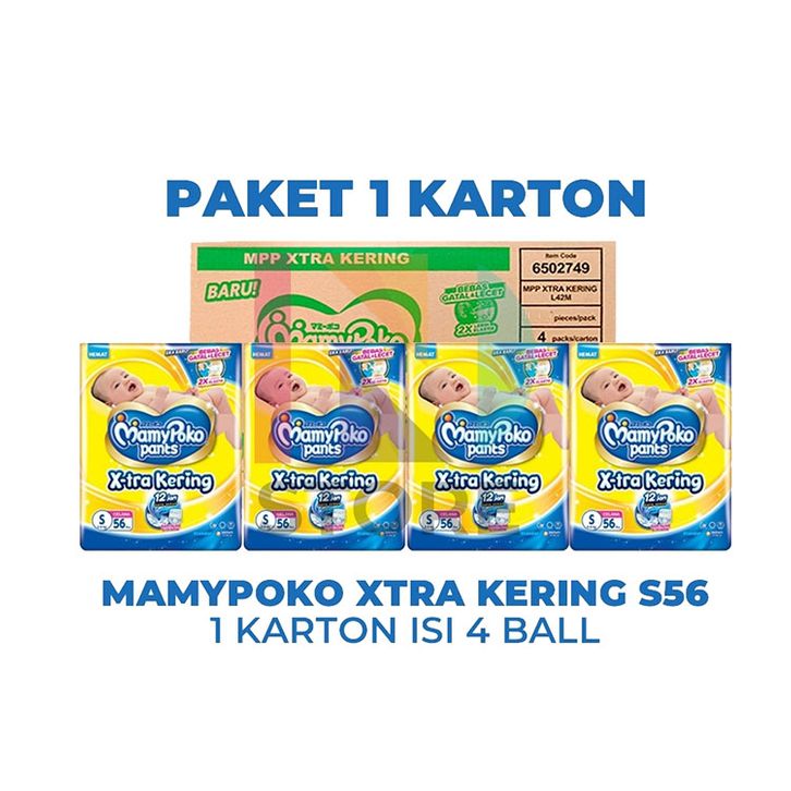 Pampers MamyPoko Pants Xtra Kering S 56 Popok Celana 1 Dus 4 Packs Harga Grosir Termurah