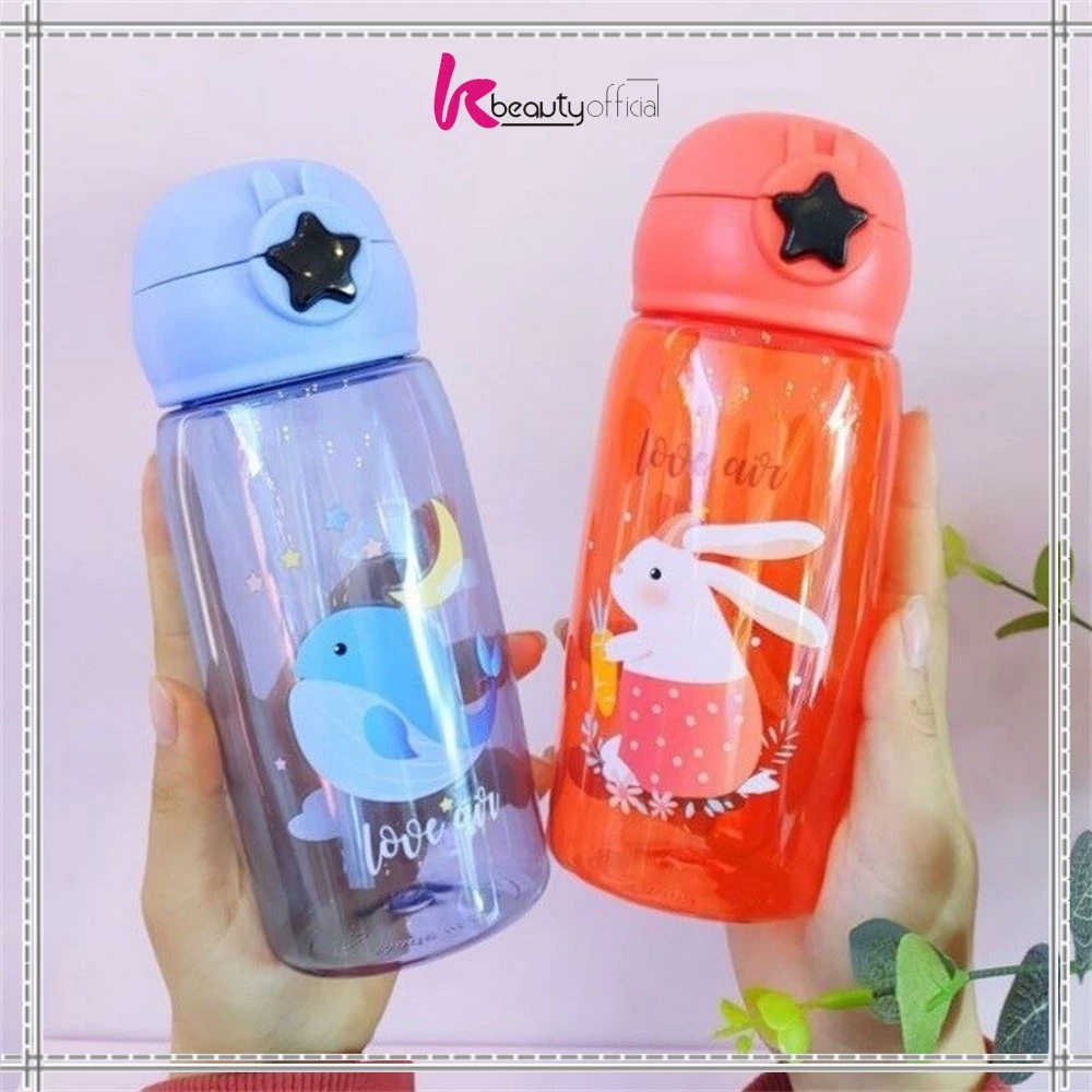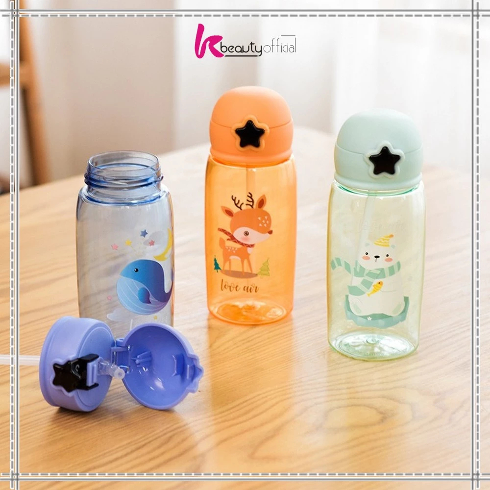 Botol Minum Anak 520ml Tombol Bintang Series BPA FREE Botol Minum Aesthetic Motif Karakter Imut Dengan Sedotan Terlaris