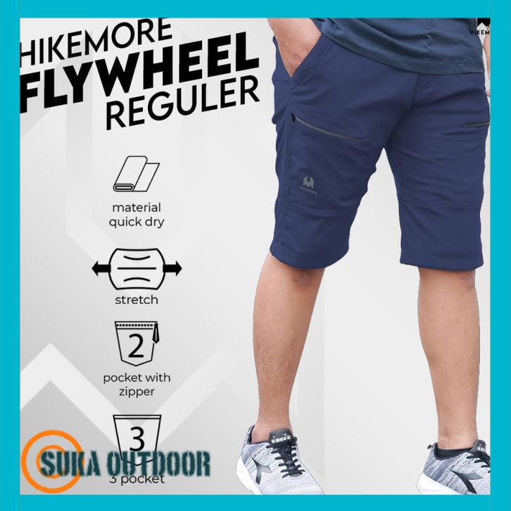 Celana Pendek QuickDry Pria Gunung Hiking Hikemore Flywheel Reguler