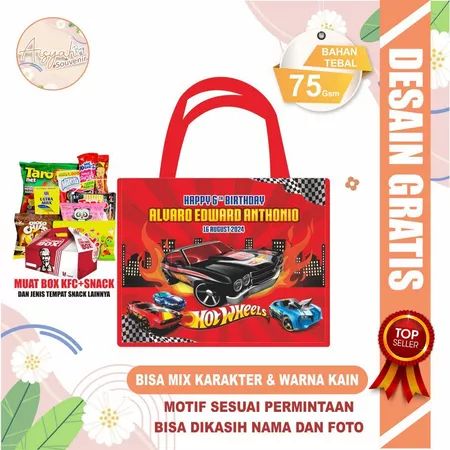 100 PCS TAS ULTAH HOTWHEELS + TAS ULTAH HOT WHEELS + TAS ULANG TAHUN HOT WHEELS + TAS SOUVENIR HOTWHEELS