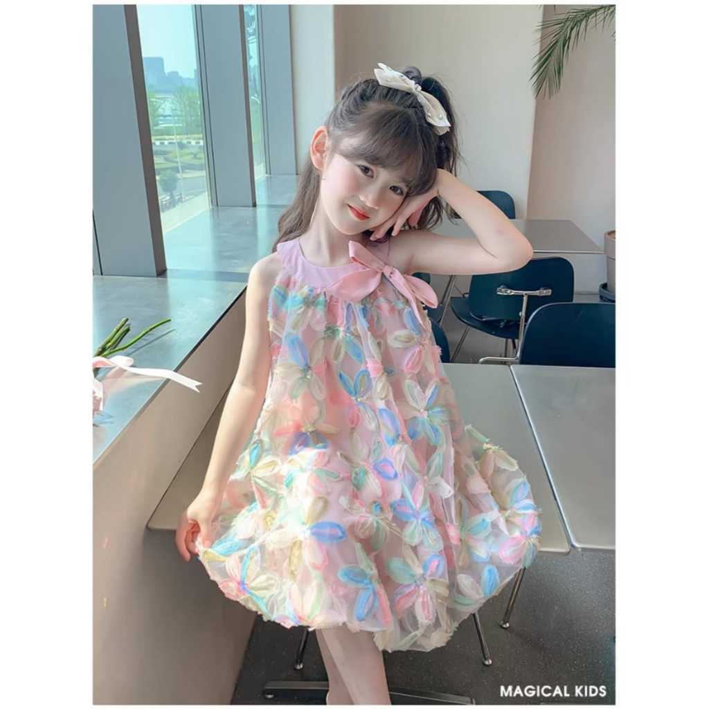 DR108-Dress Gaun Anak Perempuan Motif Bunga Timbul 3D Pearl Sleeveless
