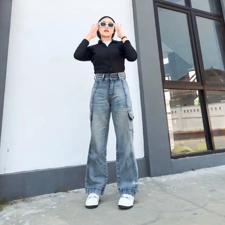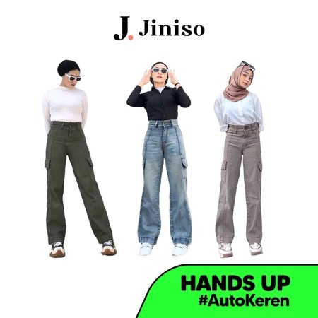 CELANA CARGO WANITA JINISO - Highwaist Cargo Hands Up Jeans Vol. 2