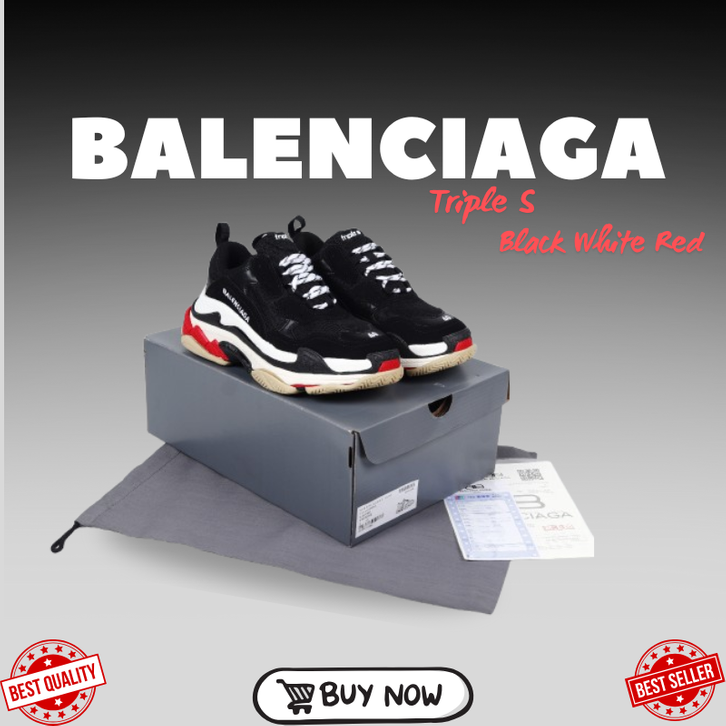 Sepatu Balenciaga Triple S Black White Red Premium Quality