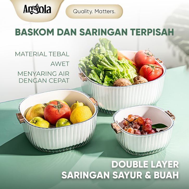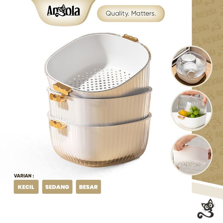 ANGOLA Saringan Sayur & Buah Dengan Tutup E81 Keranjang Buah Pengering Sayuran/Saringan Serbaguna