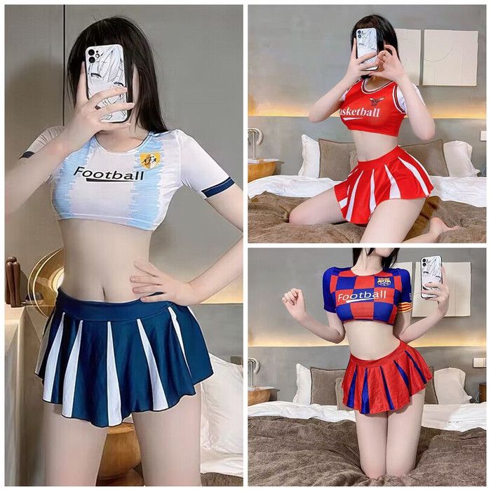 Baju Olahraga Wanita Set Sexy Lingerie Kostum Olahraga Baju Crop Top Rok Mini Sepak Bola Basket Foot Ball CD Wanita 643