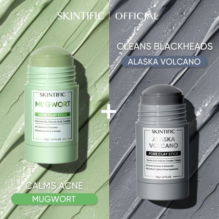 SKINTIFIC 2IN1 Clay Mask Stick Paket | Niacinamide Bright Boost Clay Stick 40g / Mugwort Acne Clay Stick 40G /Alaska Vo