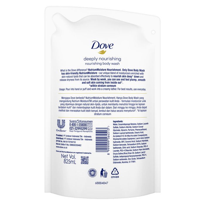 Dove Body Wash Deeply Nourishing Refill 825ml Twinpack