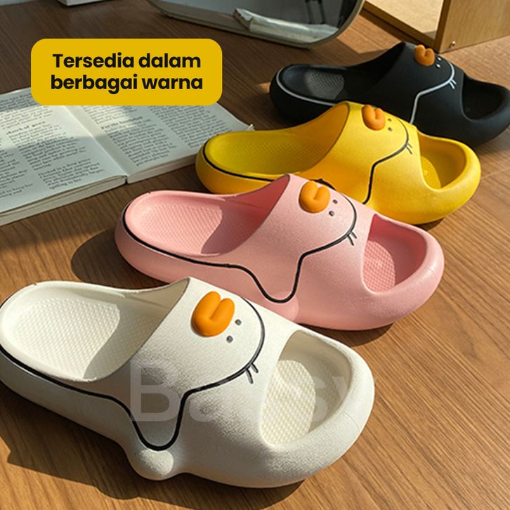 Sandal Slip On Wanita BASSY Sandal Slip On Wanita Sendal Karet Rumah Sandal Flat Karakter Bebek Sendal Slop HSN156