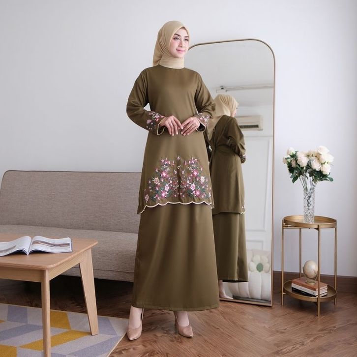 BAJU LEBARAN TERBARU 2025 Elvrist-One Set Kinara Kurung Melayu Katun Toyobo Bordir Bunga