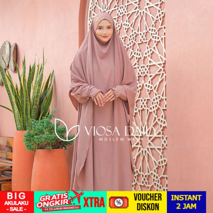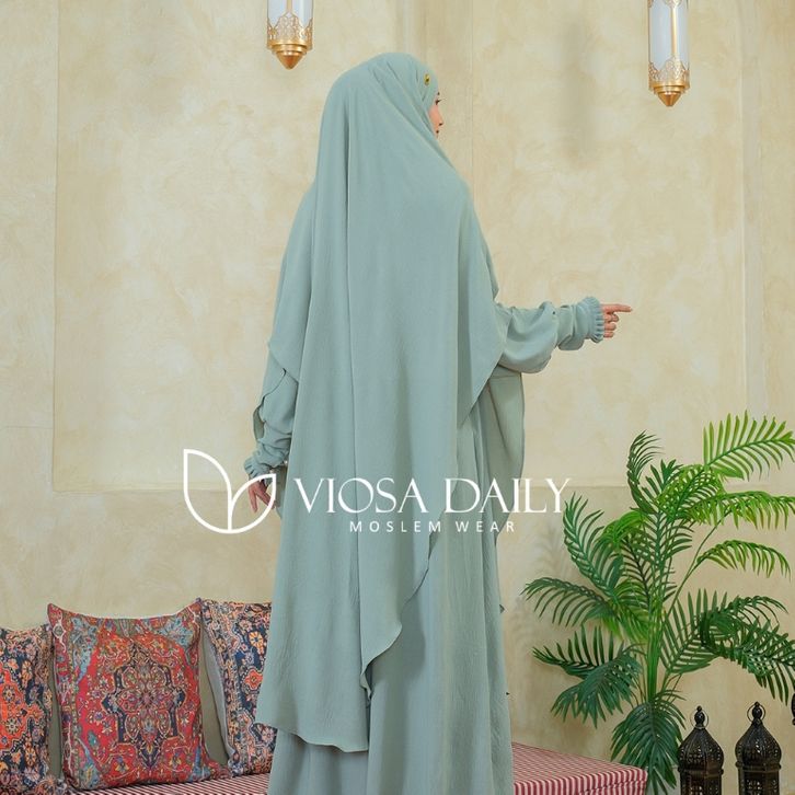 Rawda Set Abaya + Long French Khimar Rawda Set Abaya + Long French Khimar Semi Instan PremiumSemi Instan Premium