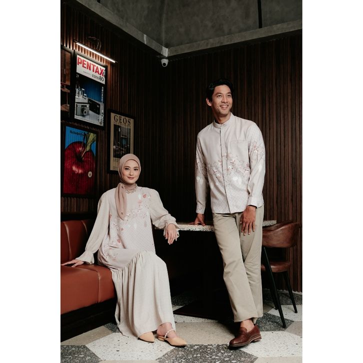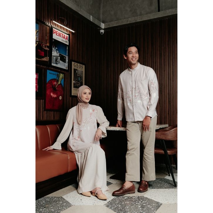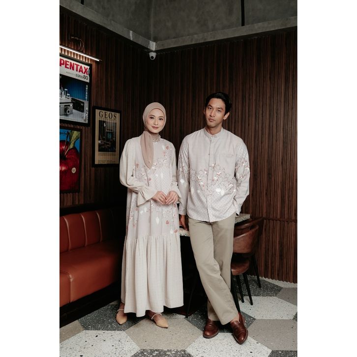 BAJU LEBARAN TERBARU 2025 GAMIS WANITA TERBARU BIA By Zaskia Mecca - Couple Set Cream - Islamic Journey In Africa - Fez