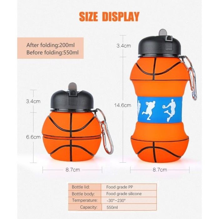 Botol Minum Anak Lipat Silikon Sedotan|Tumbler Karakter Bola & Basket - Basket