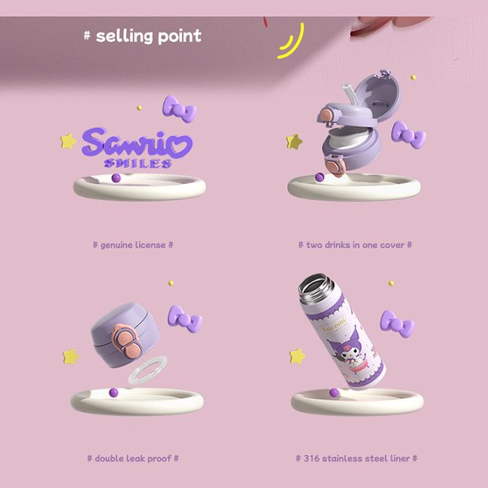Botol Minum Termos Tumbler ORI SANRIO Karakter Sanrio Anak 316 304 Stainless Steel 480 mili Kuromi Hello Kitty Cinnamor